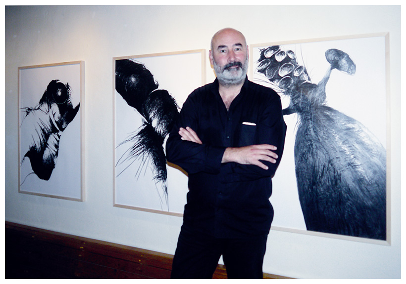 „Die Zeichnung verzeiht nicht, wenn man etwas zu viel getan hat.“ So beschreibt Thomas Autering die Bedingungslosigkeit des zeichnerischen Mediums. Schnelligkeit und Konzentration kennzeichnen seine Arbeitsweise. Wie eine flüchtige Skizze beginnt er seine Zeichnungen, verdichtet sie durch schnelle Bewegungen zu tiefschwarzen Flächen, die sich gegen das Weiß des Papiers abheben. Die Linienführung ist spontan und unruhig. Viele Linien und Striche überlagern sich, nie entsteht eine homogene Fläche; immer bleibt das fiebrige Spiel der Bewegung, die den Moment des Zeichnens festzuhalten scheint. Ohne jedwede Korrekturmöglichkeit sind diese Zeichnungen Ergebnis eines einzigen kraftvollen Arbeitsganges. Sowohl ab-strakte, geometrische als auch menschliche oder tierische Formen sind zu erkennen, ohne wirklich gegenständlich zu sein. Autering balanciert zwischen Abstraktion und Form oder wie er selbst formuliert: „Es reichen zwei Linien, um einen Stock zu zeigen. Der Betrachter denkt zu Ende.“ DIE ZEICHNUNG IST AUTARK Auterings Zeichnungen haftet das Fragmentarische, das Unvollendete an. Ein Reiz, dessen er sich wohl bewusst ist und weshalb er sich für das Medium der Zeichnung entschieden hat. „Ich benötige keine Farbe, keine Malerei, keine Skulptur. Die Zeichnung ist autark.“ Sie lässt ihm alle Möglichkeiten des Ausdrucks. Die reine Verwendung des Graphitstiftes bietet ihm hierfür einen großen Spielraum, den er variationsreich auszuschöpfen sucht. Das Ausloten von Eindimensionalität der Linie einerseits und das Erzeugen von Räumlichkeit durch die schwarze Graphitfläche andererseits sind ihm besonders wichtig: „Durch den Hell-Dunkel-Kontrast kann ich modellieren. Die Linie als solche hat keine Dimension, aber durch die Überlagerung der Linien erlangt die Zeichnung Räumlichkeit.“ Mit dem öligen, weichen Graphitstift werden Linien übereinander gelagert und schaffen in ihrer Dichte, mal mehr, mal weniger Volumen. Durch das schnelle Auftragen des Graphits entstehen Schraffuren, die das Schwarz lebendig erscheinen lassen. Durch den ständigen Wechsel der Linien, glänzt je nach Lichteinfall die Graphitoberfläche und gewinnt Tiefe und Plastizität. „Das Schwarz meiner Zeichnungen ist keine reine Fläche; sie ist nicht homogen, sondern beinhaltet Unruhe in der Tiefe. Darin ist Leben enthalten“, umschreibt Autering diese bewusst hervorgerufene Wirkung. DYNAMISCHE KOMPOSITIONEN Die Zeichnungen sind fein und doch durch die ölige Beschaffenheit des Graphits kraftvoll und satt, der sich glänzend vom stumpfen, flächigen Weiß des Papiers abhebt. Autering setzt diesen Kontrast in ein spannungsvolles Verhältnis innerhalb der Blattgröße. Damit das Schwarz wirken kann, wird ihm eine entsprechende Menge Weißraum entgegengestellt, in den es hineinragen kann. Auf zumeist großformatigen Blättern setzt Autering seine Liniengebilde in dynamische Kompositionen und bezieht den Rand oftmals mit ein, ohne dadurch zu begrenzen, sondern vielmehr die Zeichnung über den Bildrand hinaus zu imaginieren. Ohne Begrenzung und Konkretisierungsversuche. Mit dem Begriff Freiraum könnte vielleicht auch am ehesten Auterings zeichnerisches Werk charakterisiert werden, dass jede Einengung vermeiden will und stattdessen das Nötigste verdichtet. Weder Titel noch naheliegende Assoziationen sollen wachgerufen werden, sondern die Linie in ihrer Vielfalt zum reinen Ausdruck werden. 1970 geboren in Lüdinghausen Arbeitsweise Mein künstlerischer Schwerpunkt liegt auf Grafitzeichnungen. Reduktion auf den Strich als Mittel, Modulation durch Überlagerung der Linien, spontane Entwicklung während des Entstehens, großzügige Gesten |