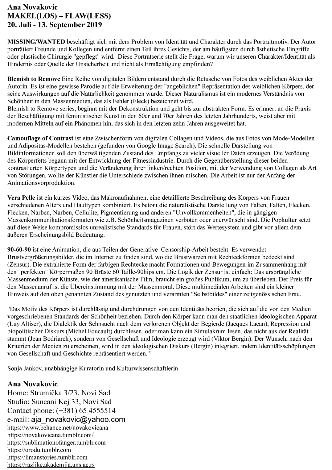 2010. Communication, collaboration with Milica Škrbić, ŠOK Gallery Art Klinika, Novi Sad